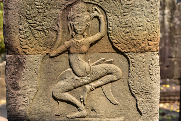 La non-présence de support supposait une menace de disparition assez évidente. J’ai déjà abordé le fait que la danse a failli être totalement oubliée lorsque les Khmers rouges ont décimé la population artistique et intellectuelle du Cambodge. Cependant, grâce à l’étude et à l’observation de la sculpture, nous arrivons à en comprendre un peu plus sur la danse et sa pratique à travers les âges.